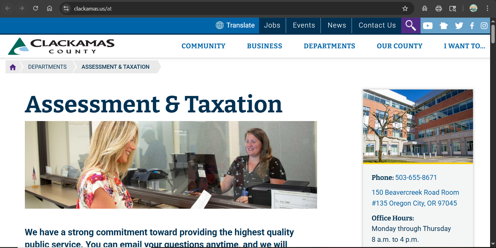 Official Clackamas County Assessment & Taxation: https://www.clackamas.us/at