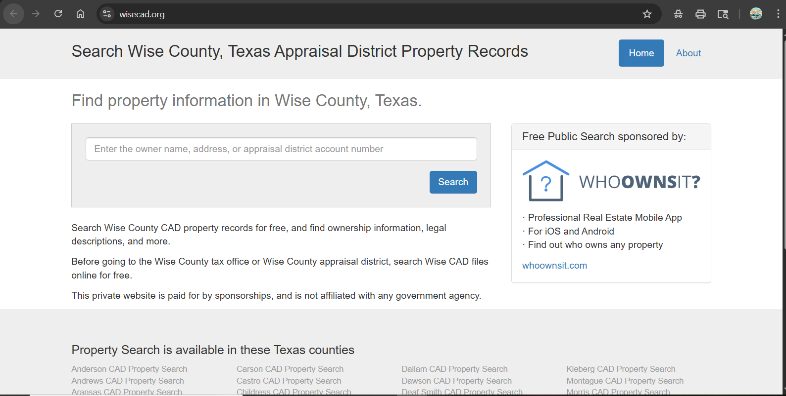 This guide comes from County-CAD.us. We are not part of the Wise County Appraisal District or any government office. We only link to the official sites so you get real information.